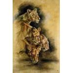 A VICTORIA MacDERMOTT (Irish) hand numbered limited edition print on canvas: "Study of Four Lionesses" One of only 95 Worldwide. Very professionally framed. Note: Supplied with a replacement valuation for £950 along with biographical details on the artist. (Free of charge) condition good.. H: 112cm W: 81cm D: 4cm