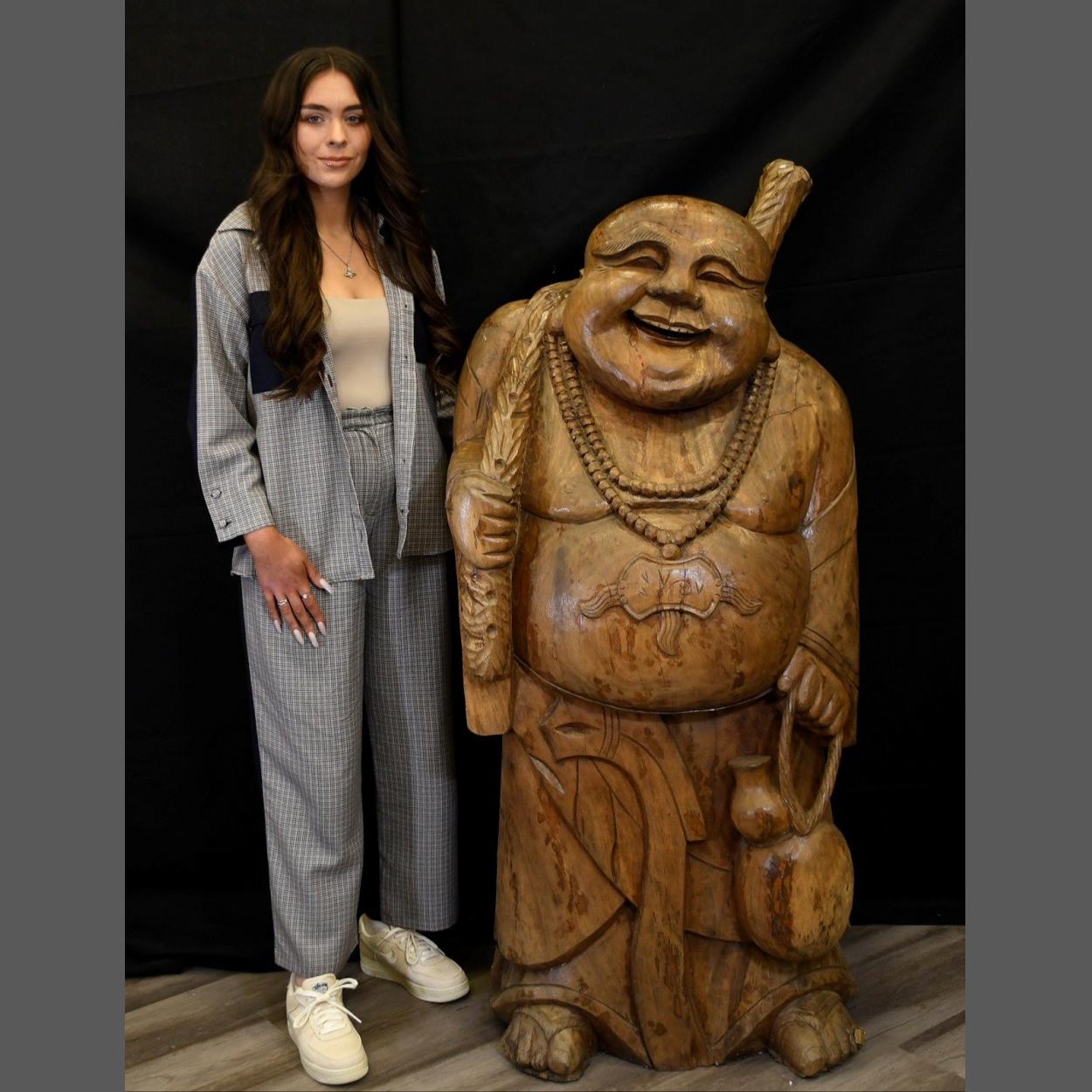 A large very heavy wood carving of a Buddha standing approximately 5ft tall. Origin Thailand Circa 1980 Condition Good. H: 152cm W: 75cm D: 63cm