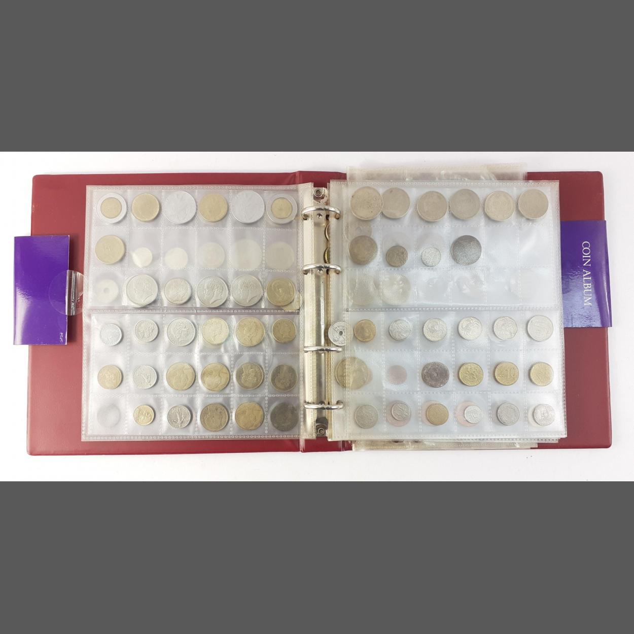 A super WH SMITH coin album filled with foreign coins of various denominations,