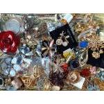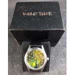 A boxed collection of costume jewellery to include many enamelled brooches, a ROJAS pocket watch, and a boxed WILD TIME watch (02481) with peacock face and clear stones