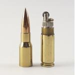 A super lot of three novelty lighters including a Japanese lighter mounted in a vintage car, a bowling pin lighter and a cased bullet lighter.