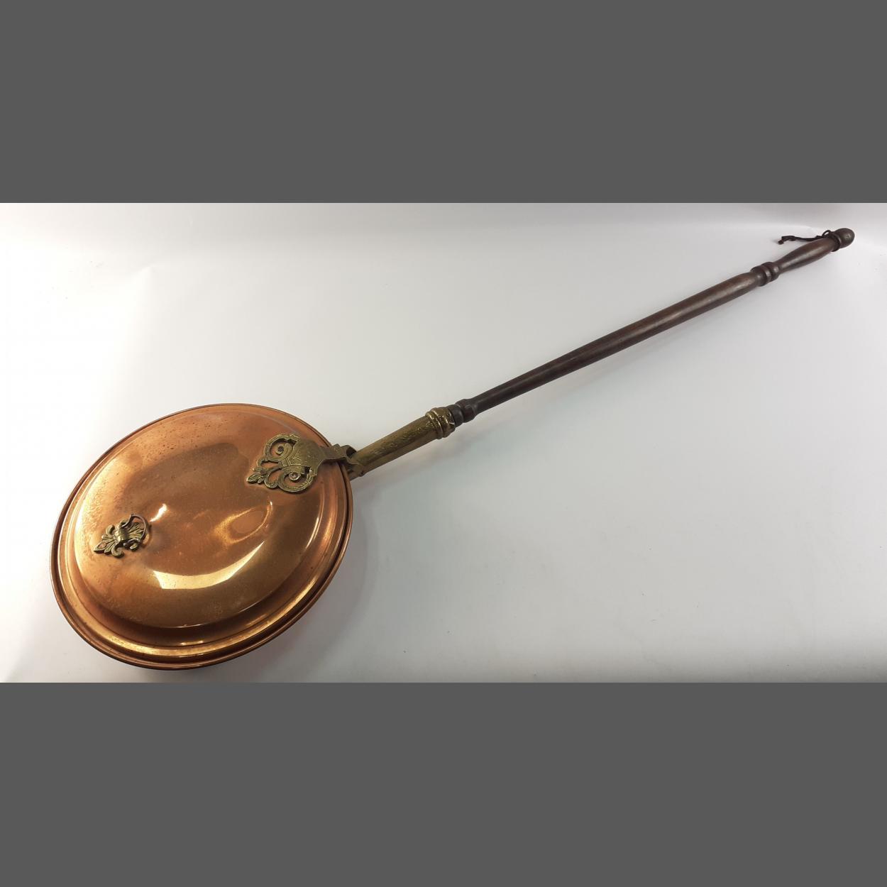 A nice example of a wooden-handled copper warming pan, 112cm long approx