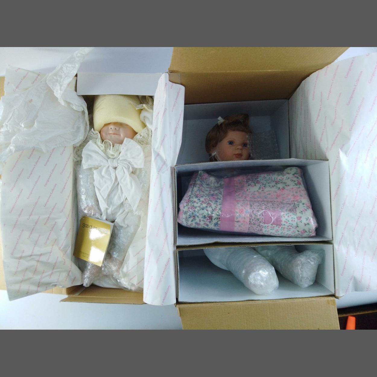 In boxed excellent condition. Two large boxed BARBARA PRUSSEIT collectors dolls. Gifts of Heaven and Country Quilt Babies collections.