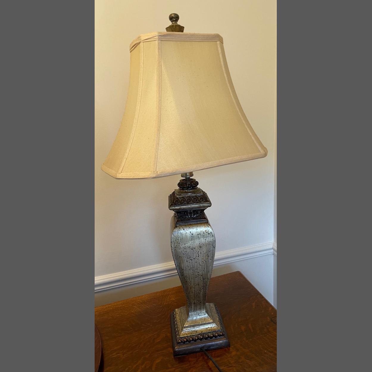 QUALITY! A STYLISH silver effect based table lamp with shade - stands 2ft tall incl shade approx