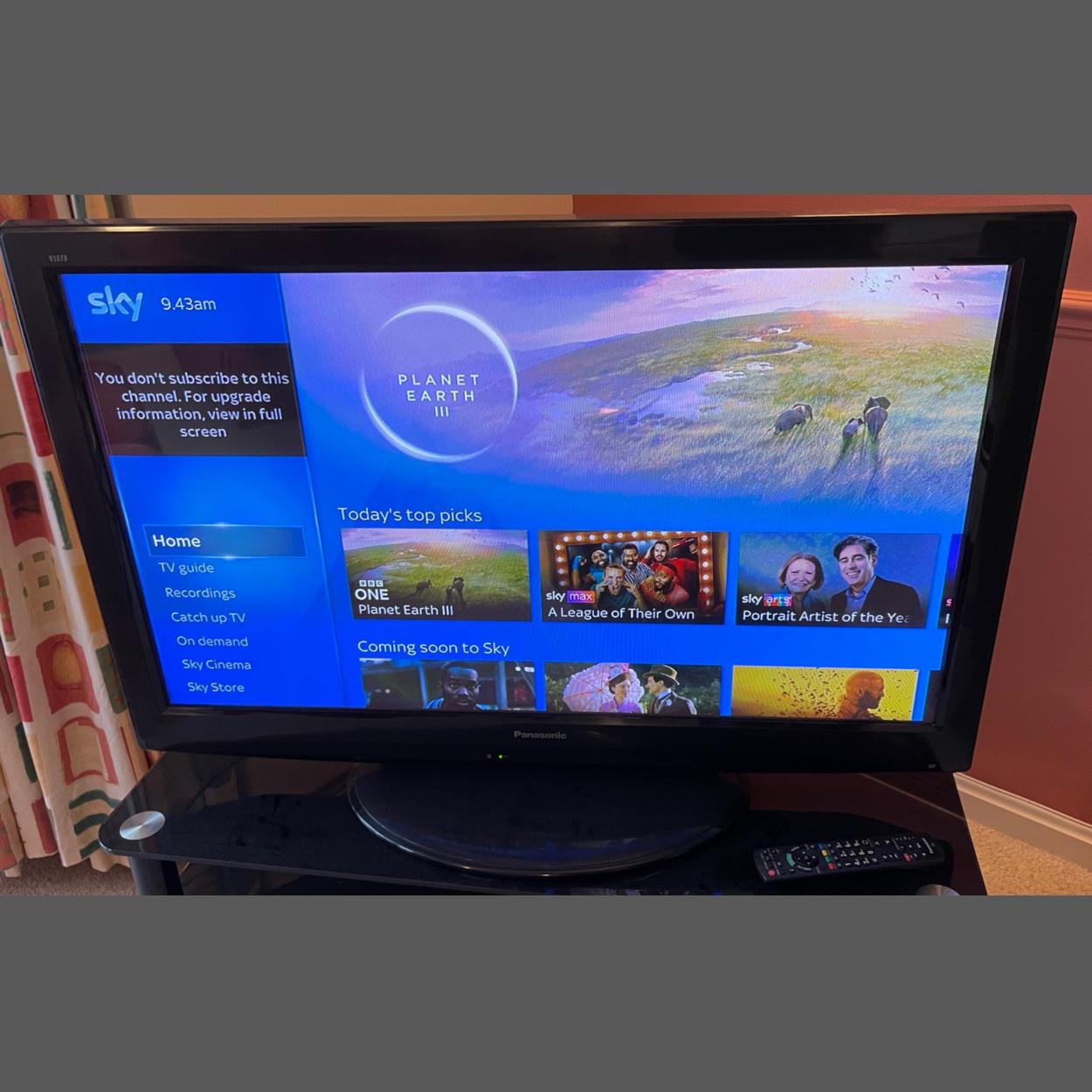A large PANASONIC colour TV with remote control - this tv was running off SKY and used as a smart tv although this is NOT a SMART TV - the screen measures 41" diagonally approx