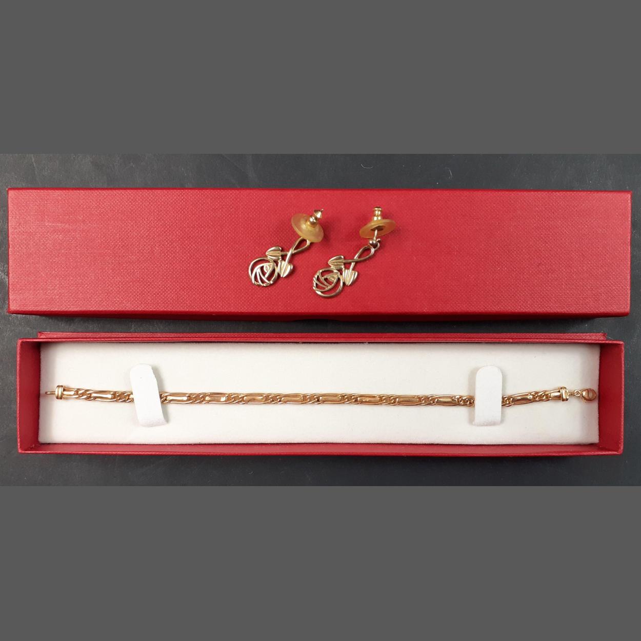A yellow metal bracelet stamped 9KT, 19cm long, weight 3.54g approx and a pair of hallmarked 375 earrings, 3cm long, gross weight 3.4g approx