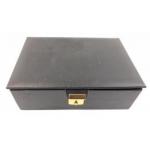 A black jewellery box with lift-out shelf and contents of costume jewellery 24x17x7cm approx