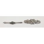An ANTIQUE silver brooch with bird and floral decoration, hallmarked for Birmingham 1901, maker's mark for STAINTON BROTHERS, 5cm long, weight 3.05g approx and also a marcasite brooch 5cm long
