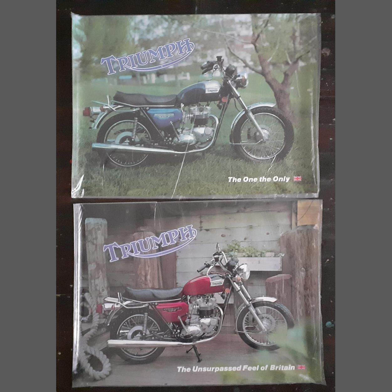 Two superb original TRIUMPH motorcycling advertising posters for TRIUMPH BONNEVILLE 750 one red, one blue each 66 x 48cm approx