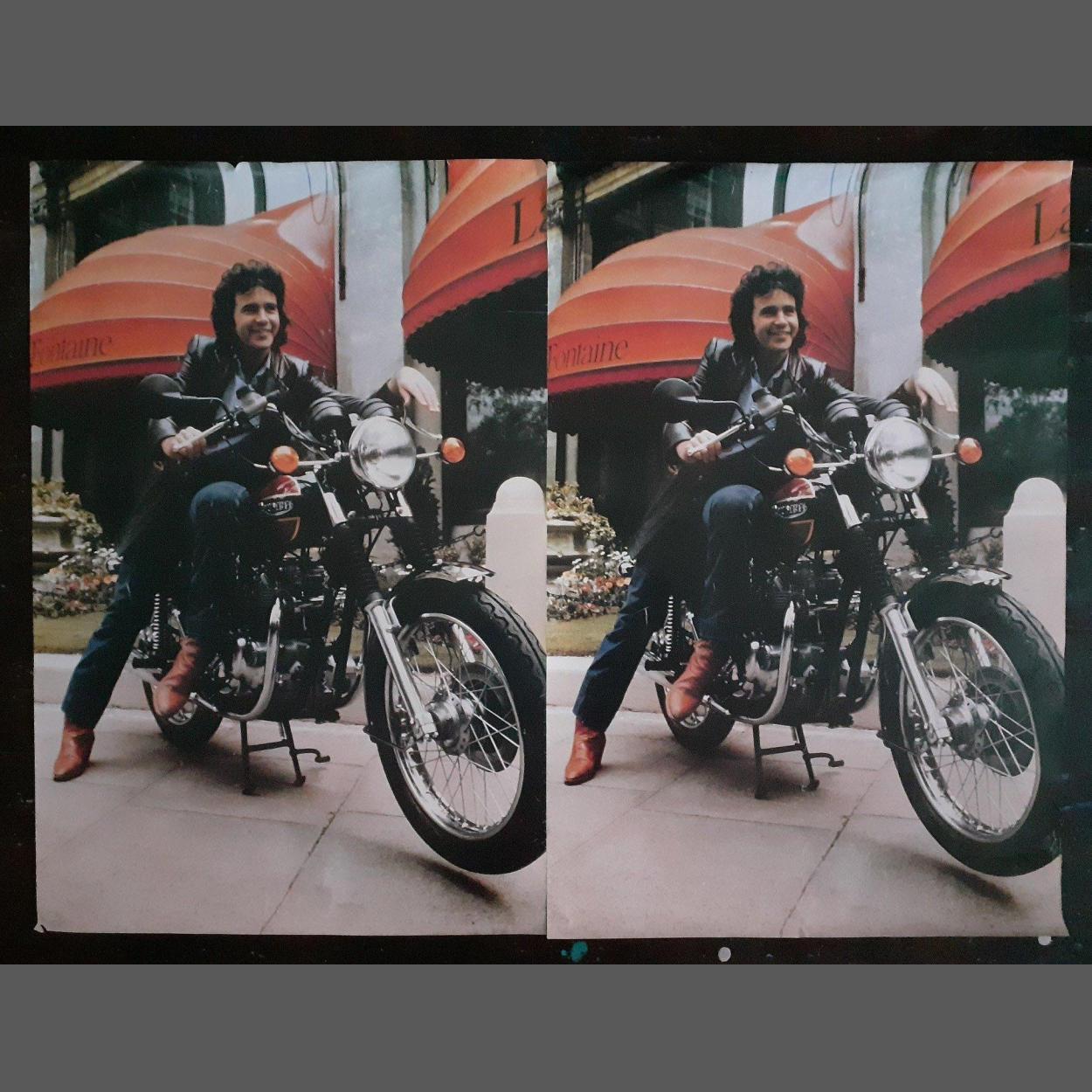 Two identical vintage DAVID ESSEX Triumph motorcycle advertising posters each 75x50cm approx