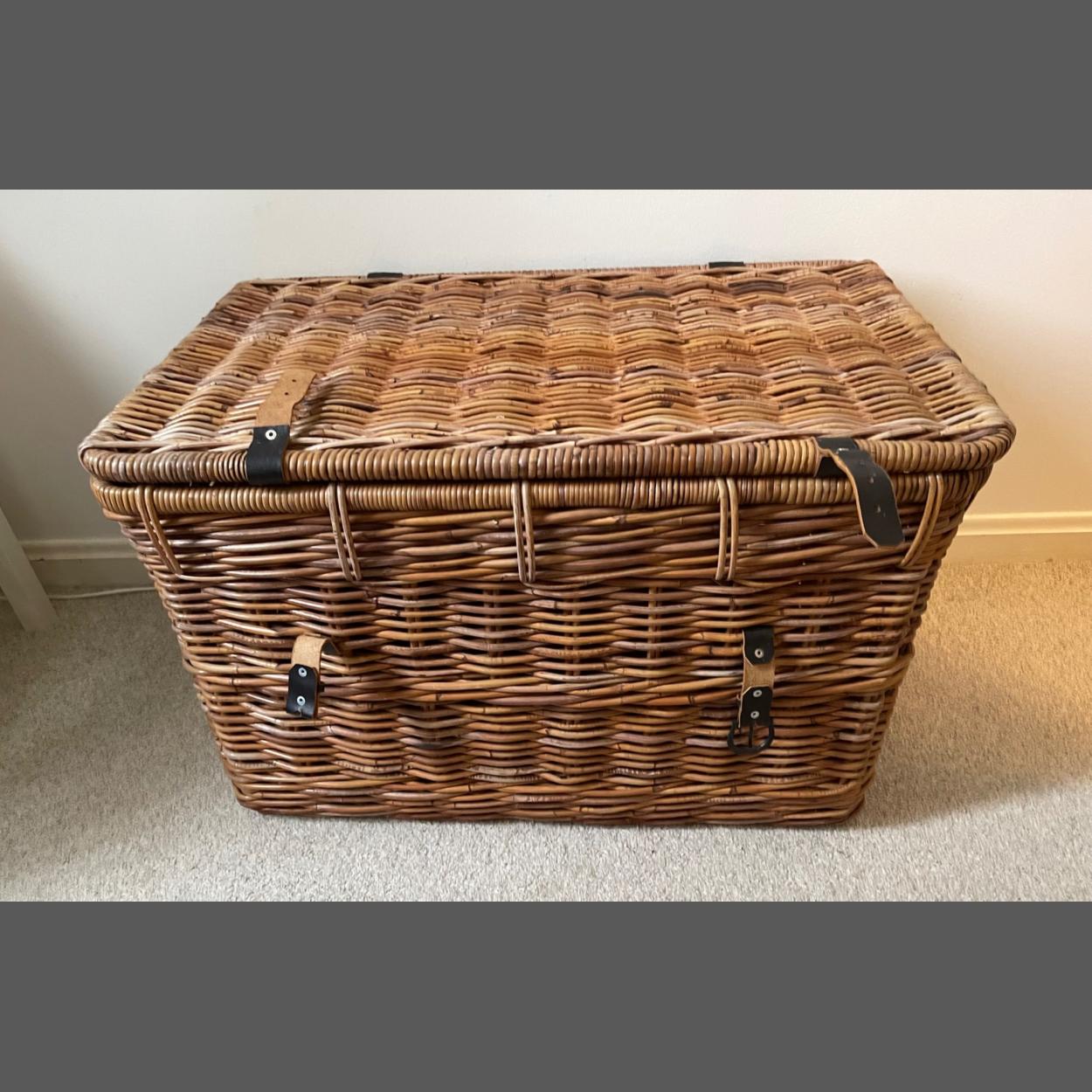 A VERY LARGE reed basket with hinged lid and side carry-handles - 2ft x 18" x 18" height approx