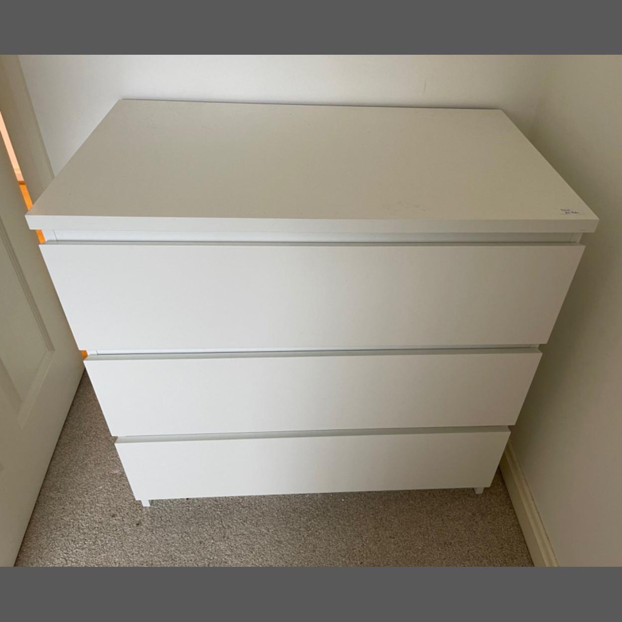 An ex-IKEA set of three drawer chest of drawers finished in white - dimensions 2.25ft height x 18" depth x width 3ft approx - in nice clean condition