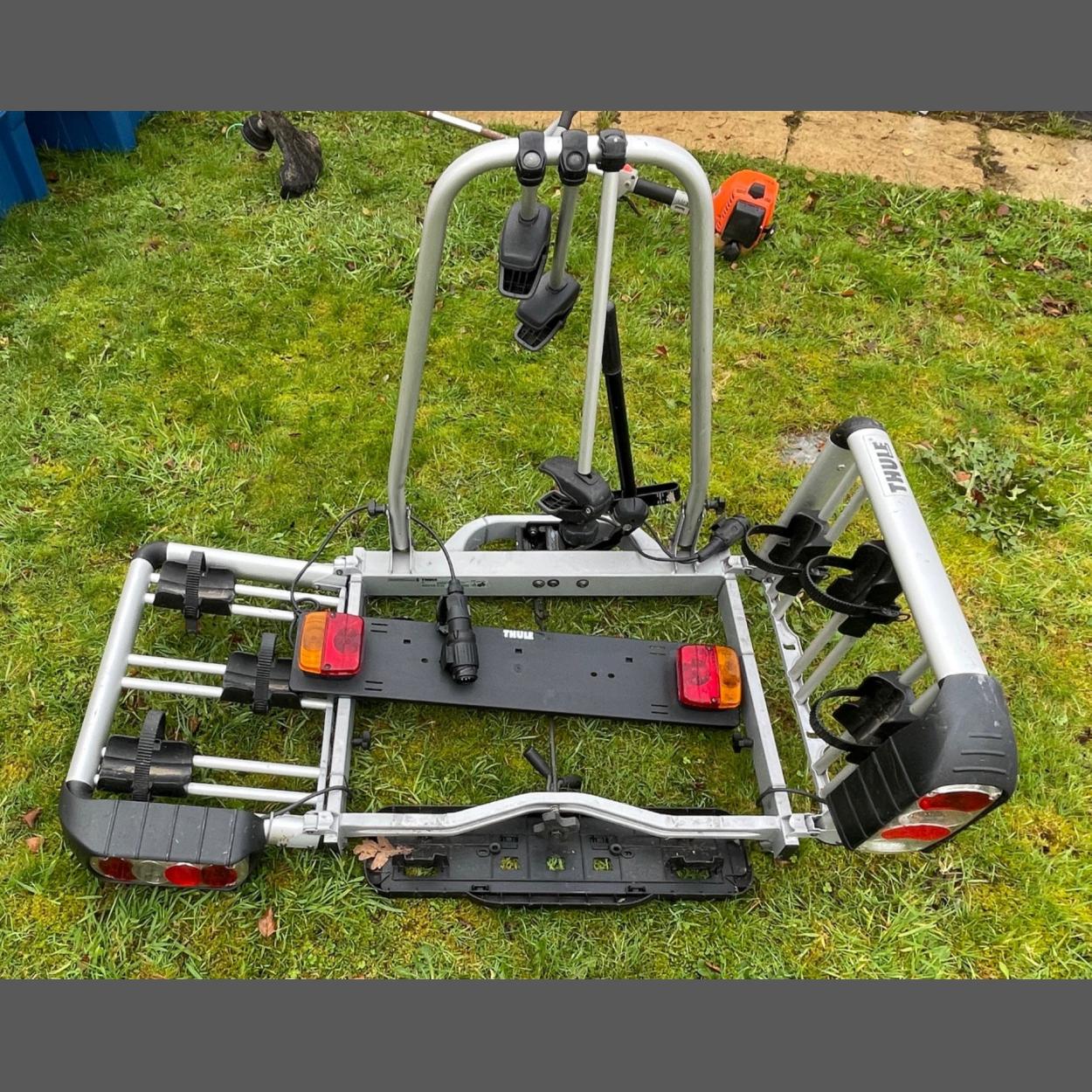 A 'TOP OF THE RANGE' THULE car rear loading bike rack ready to go! including rear lighting system