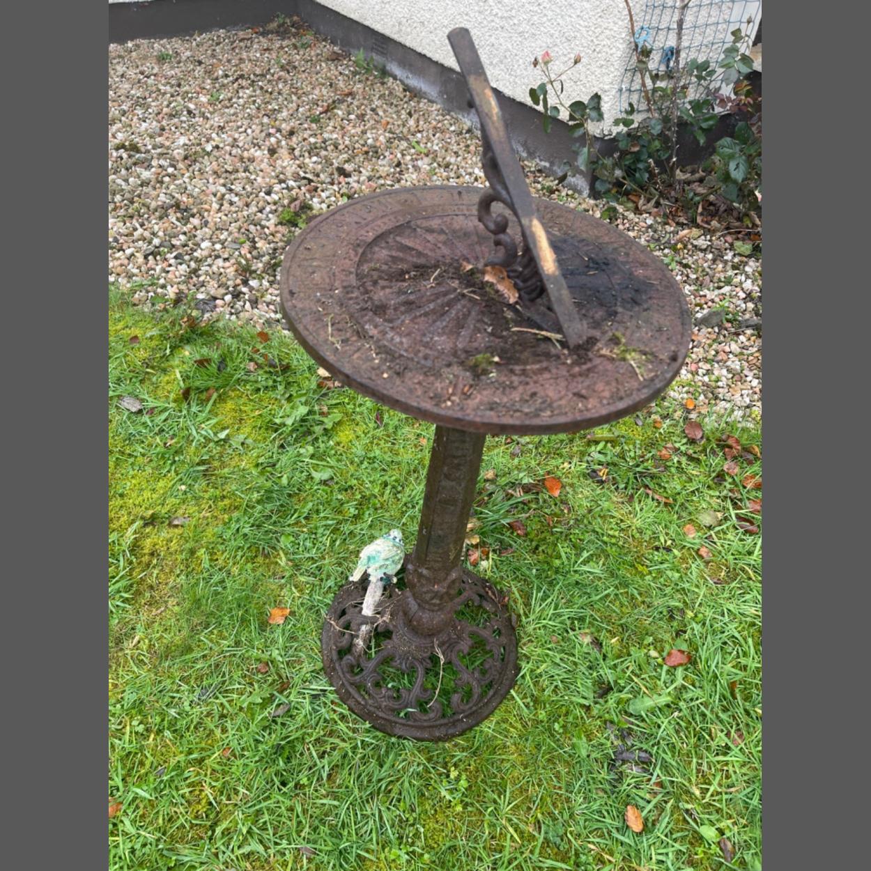 A RUSTIC cast iron garden sundial with contents!
