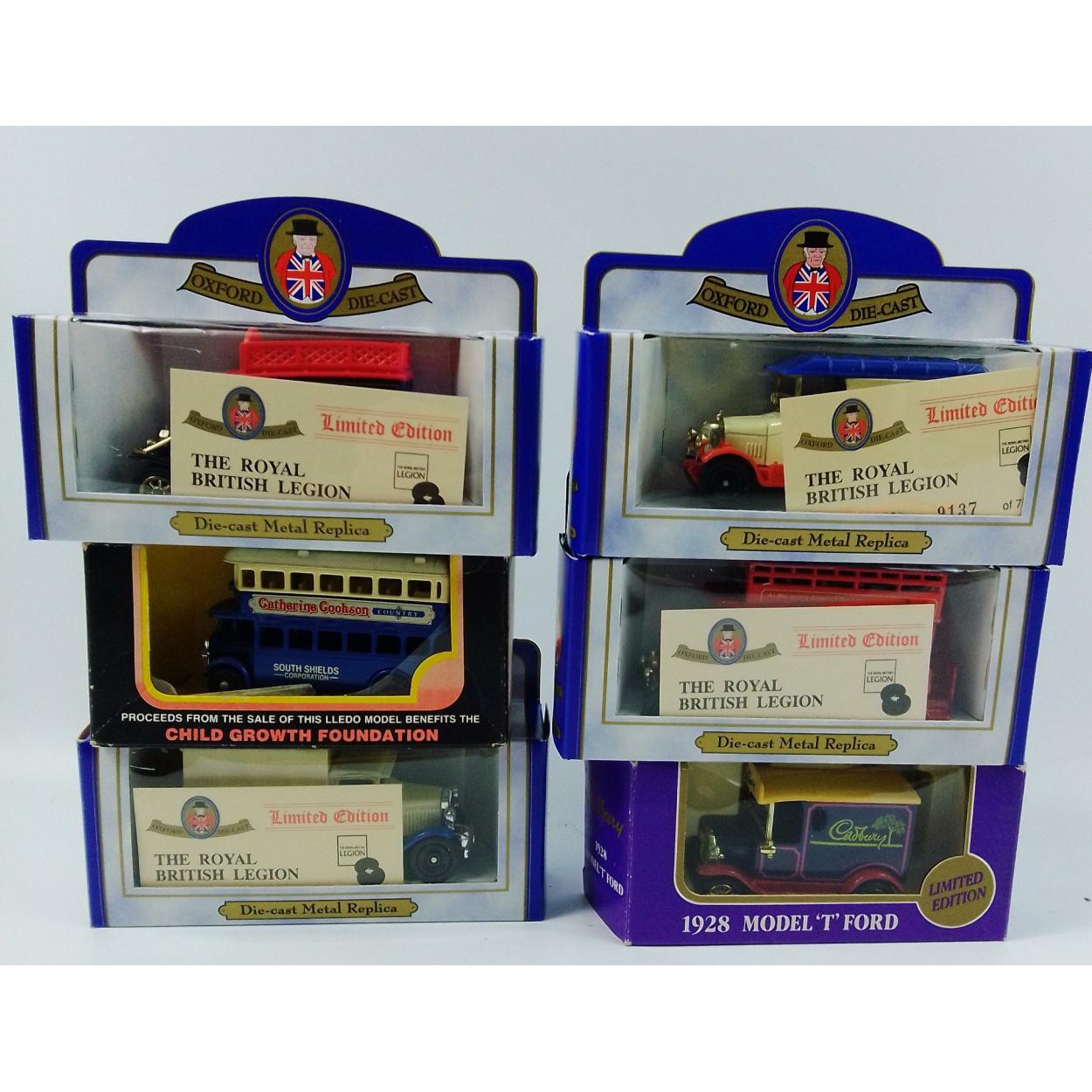 A collection of four OXFORD DIE-CAST Royal British Legion limited edition models, boxed in shipping container. Lot also includes a CATHERINE COOKSON COUNTRY bus, a LLEDO CADBURY'S model vintage van