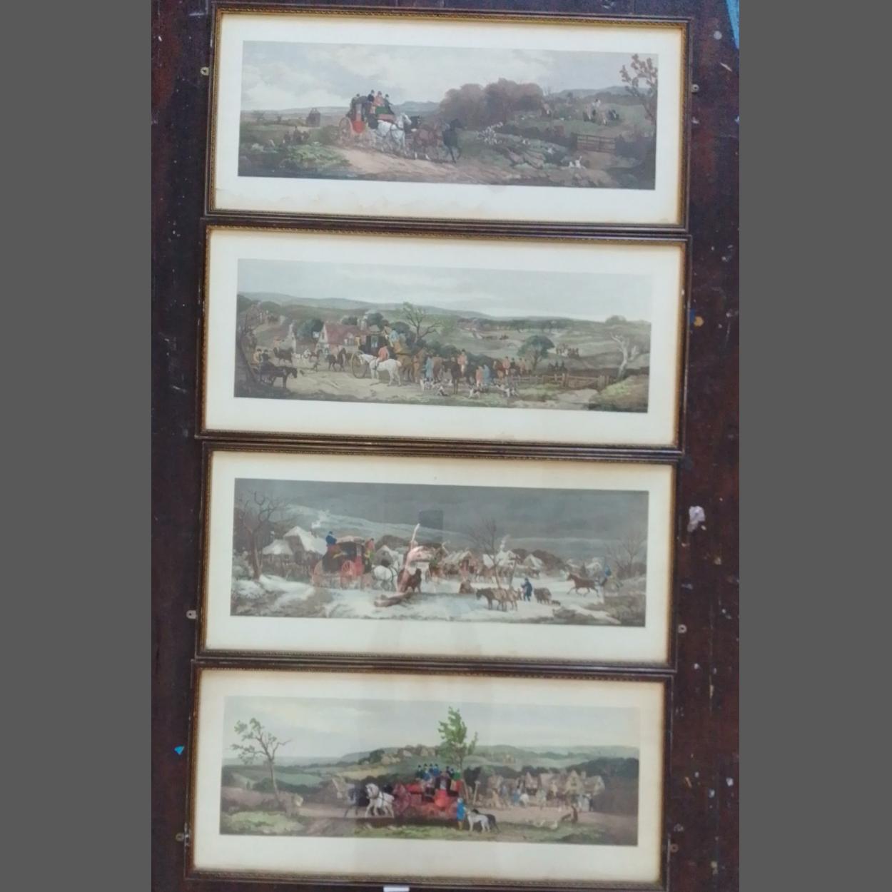STUNNING! Four antique large coaching engraved prints depicting the four seasons published in 1880s 76x34cm approx