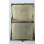 A rather nice Austrian Deco Silver Cigarette case by CARL HEISS WIEN Kohlmarkt 12, stamped 900. Striped multi colour finish with chased edges and a blue stone catch release. A rather lovely item from a time of European opulence. Does have a few minor dents.
