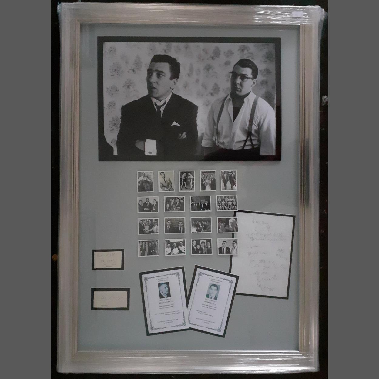 Kray Twins Unique Art Presentation with Reg and Ronnie's Original Signatures. A superb framed art presentation incorporating the authenticated signatures of Reg and Ronnie Kray. Also in the presentation is a hand written letter by Reg Kray. Professionally framed to a high standard. Size approx 130 x 93cm