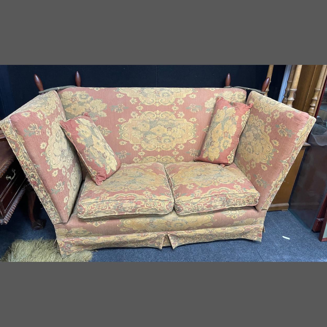A Knoll 3 seater sofa in faded MULBERRY fabric 195cmW x 105cmH x 97cmD, 47cm height to seat
