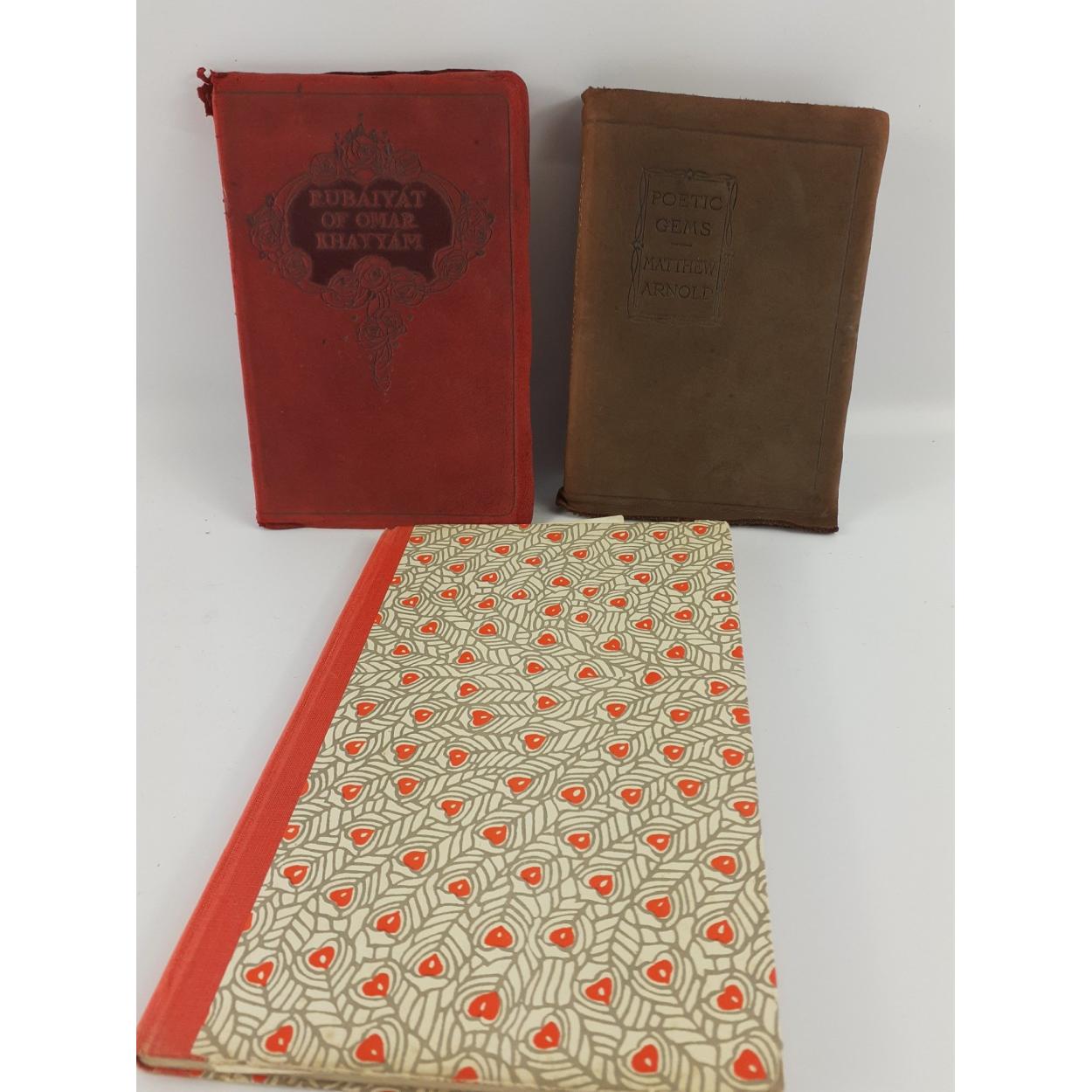 PEEBLES INTEREST! - Three vintage books to include a first edition hardback copy of HISTORIC HAUNTS OF PEEBLESSHIRE by Gilbert Rae, published in 1948 by Oliver and Boyd, a soft red leather covered copy of the RUBAIYAT OF OMAR KHAYYAM: The Astronomer-Poet of Persia published by Gay & Hancock and translated by Edward Fitzgerald. Also a copy of POETIC GEMS by Matthew Arnold in a soft brown leather cover with gilt lettering to spine, with coloured plates and floral wreath edges to pages, published by Collins possibly in 1940