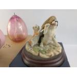 A mixed box to include a boxed BORDER FINE ARTS model (RR07) 'If the Cap Fits', a HISTORY CRAFT (A1612) Hole in One trinket box, a pink PRICE KENSINGTON teapot for one and 2 pieces of cranberry and gilt glassware