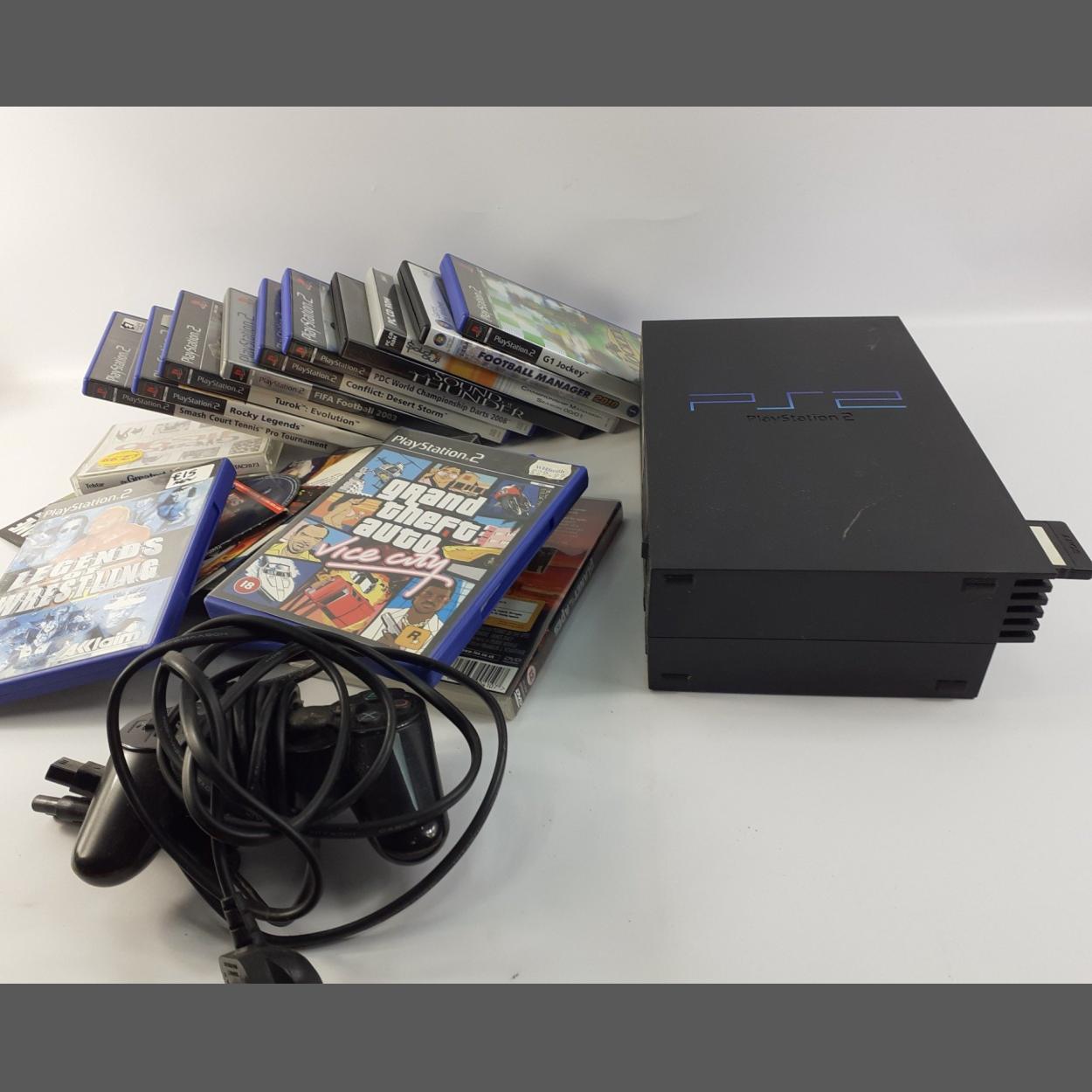 A SONY PS2 with a selection of games. Untested but believed in working order. With cables and one control.