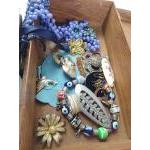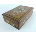 An Indian inlaid jewellery box containing some interesting pieces including an DIS REGO South African head brooch, A CAERD Scottish brooch and other items of interest.