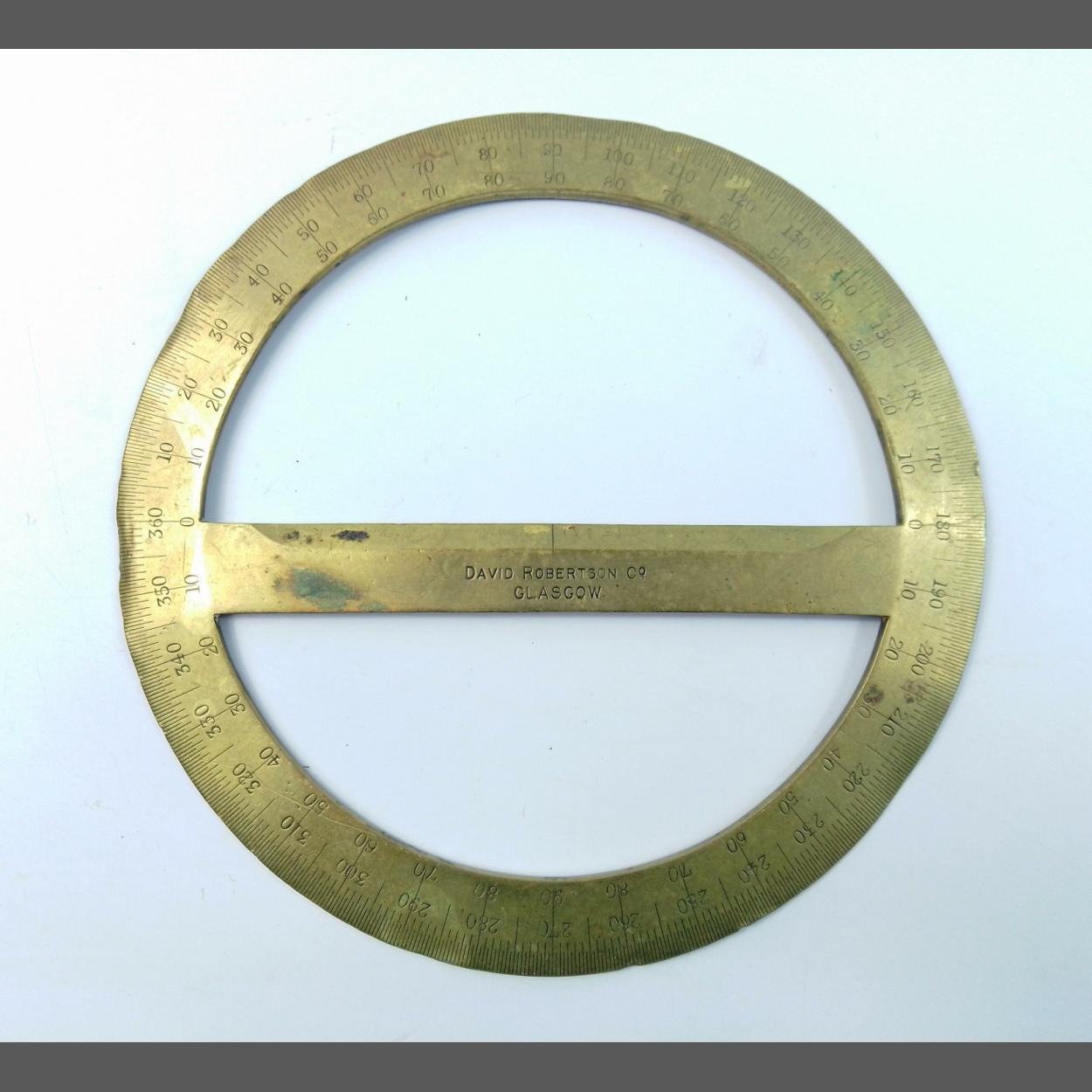 An antique Victorian circular brass protractor made by David Robertson Co of Glasgow diameter 15.5cm. Numbers all legible