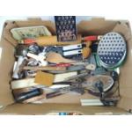 A mixed box of kitchen ware to include a MESTERKOKKEN Flamingo casserole dish with lid hand-graters, etc