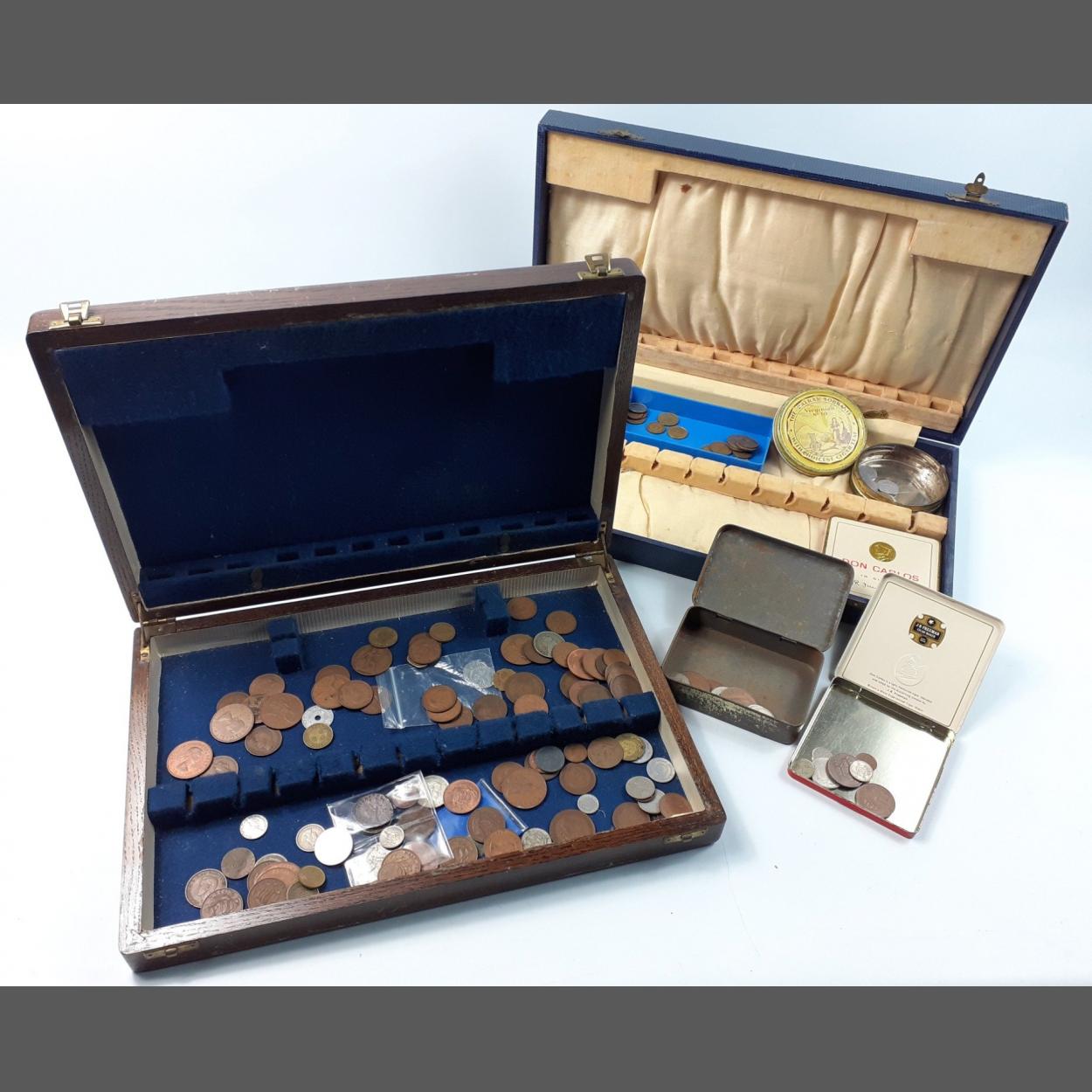 An older child's coin collection to include some Italian, post-war German, 1950's Greek, Irish, and a mixed selection of obsolete UK coinage and others contained within 2 old cutlery boxes