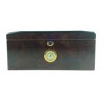 A HUMIDOR with hygrometer to front with lacquer finish and keys. Some fading to the lacquer finish. W34xH16xD24cm approx