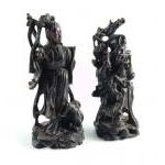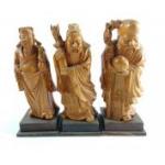 Seven carved wooden Oriental figures of deities, Mongol warrior etc, the largest standing 20cm tall approx