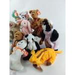 A basket of TY beanie bears to include Twigs the Giraffe, Peace bear, Tank the Armadillo, America Freedom bear, Purrcy, Spooky, Dickens and others