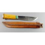 A hunting knife in sheath by MARTTIINI of Finland in decorated leather sheath, total length 26cm including handle