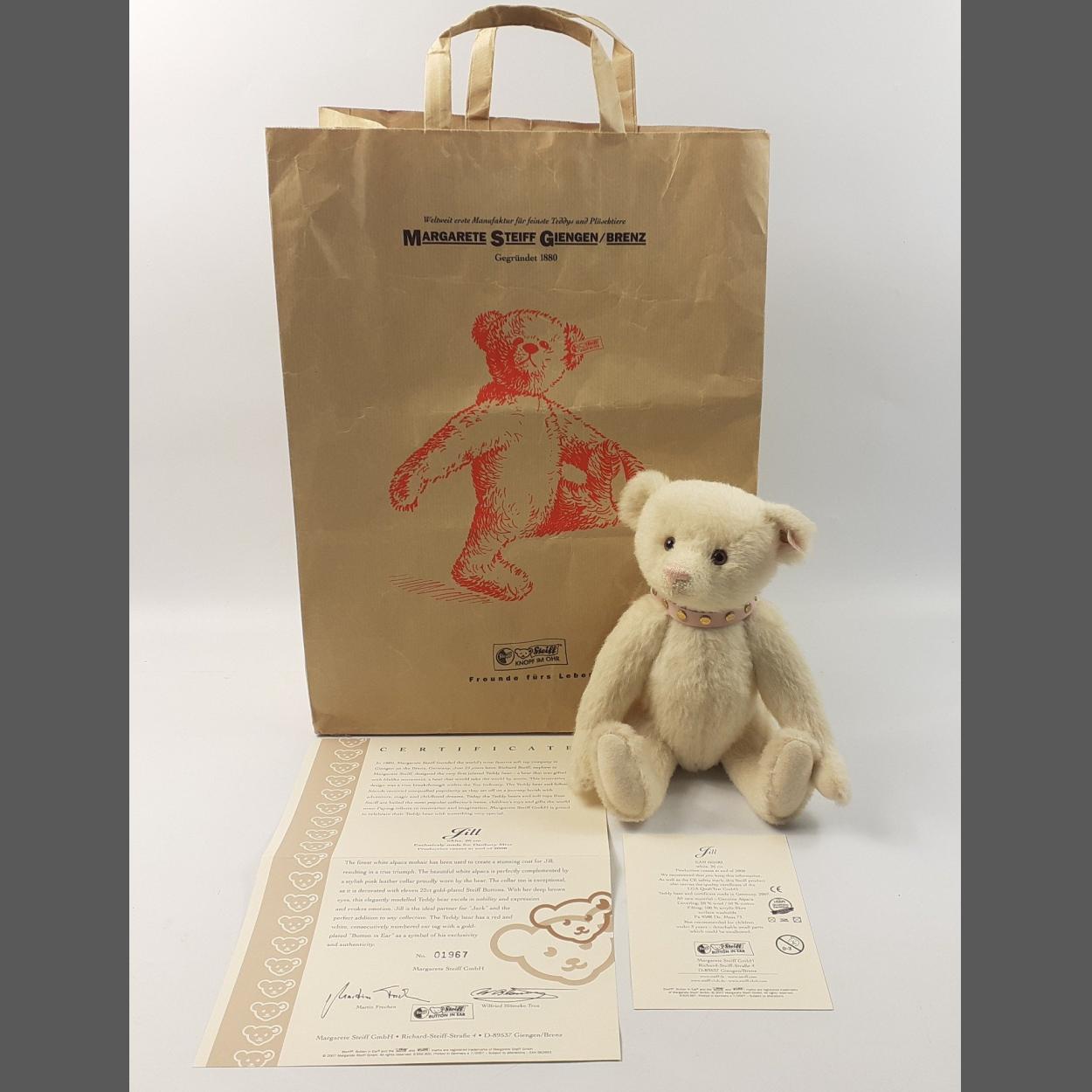A white STEIFF Jill Bear reference 662683, standing 26cm high, produced in 2009, with certificate number 01967, with alpaca fur