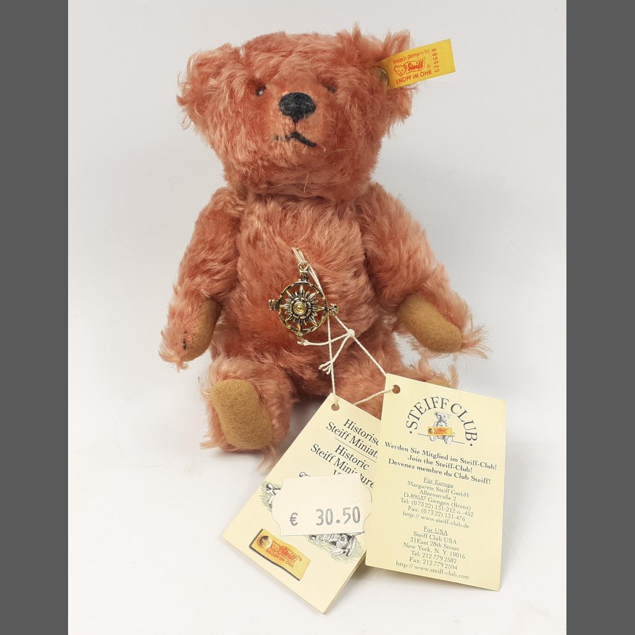 A STEIFF historic miniature VII, US Special Rose Teddy 1995, reference 029608, stands 16cm high, with medallion and labels,