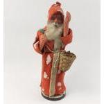 A vintage Father Christmas with space for a small present on a wooden base, stands 24cm high approx