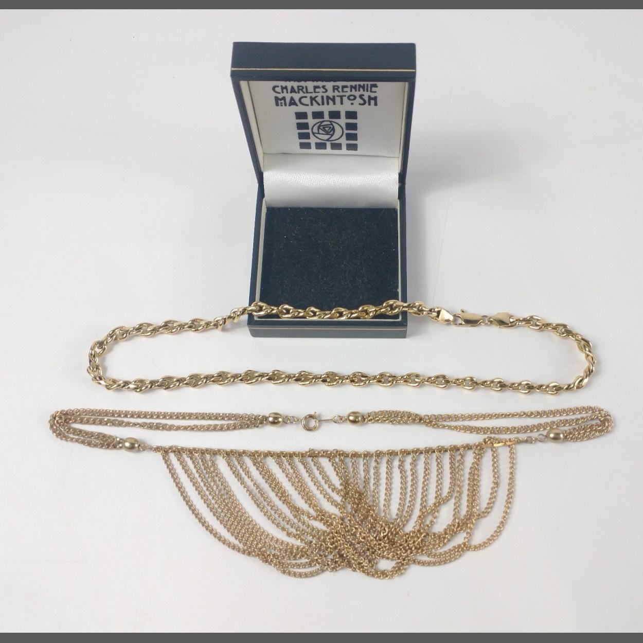 Two unmarked yellow metal chains, one a chain-set weight combined 62g approx