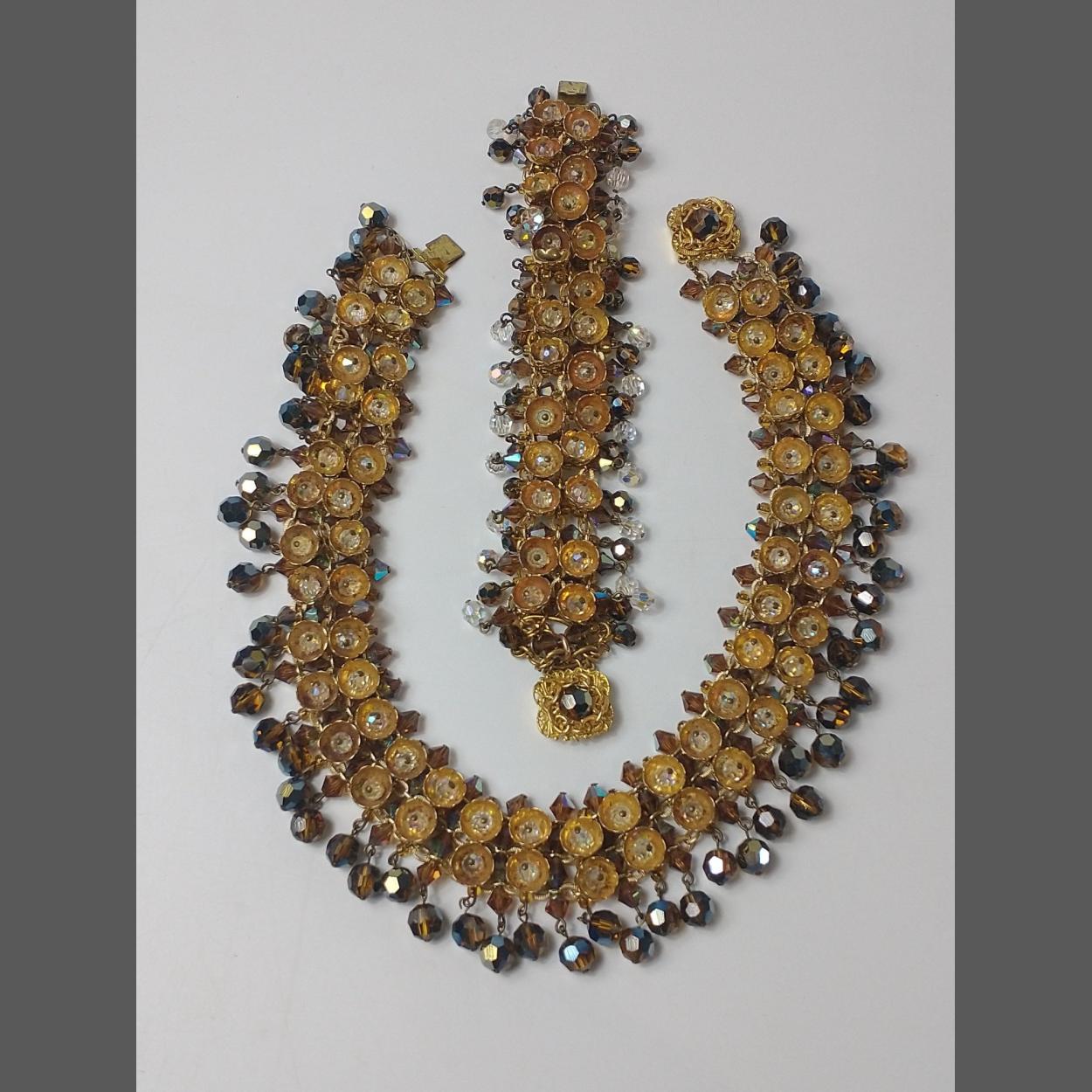 Two real statement pieces of jewellery - a matching necklace (38cm long approx) and bracelet (17cm approx) with flower cup design and droplet beads