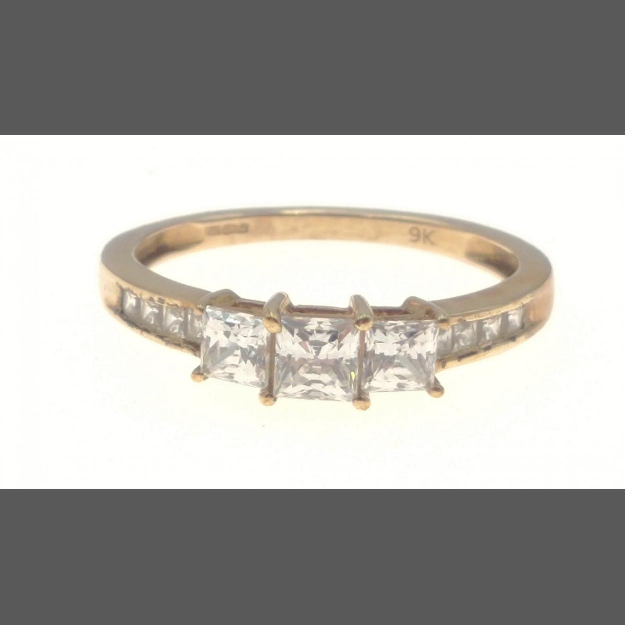 375 stamped gold ring with white stones. Stamped TJC. Size T, gross weight 2.75g approx