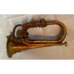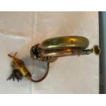 Military ANTIQUE copper and brass BUGLE with tassel and ROYAL ARTILLERY brass regimental plate - it has a few understandable dents for its age - dimensions 27cm tall x 14cm wide approx