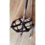 ANTIQUE c1910 decorative wooden skis and bindings with a pair of ski poles - skis stamped G NEIKSHN - dimensions 6ft approx skis