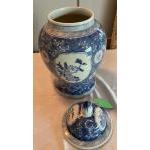 ANTIQUE SUBSTANTIAL ORIENTAL blue and white porcelain lidded vase - stamped to base - dimensions 20" height x 10" diameter - in very good condition