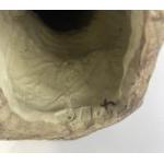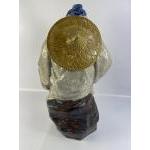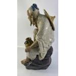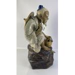 A striking large vintage SHIWAN MUDMAN with crackle glaze finish sitting on a rock standing approx 47cm high, end of stick missing