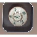 Four antique ORIENTAL crackleware SAKE or soy dishes well-displayed in a quality wooden frame measuring 79x30x5cm