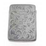 An ANTIQUE silver hallmarked (indistinct marks) Vesta inscribed 'WW' and heavily chased floral design. Measures 5x3x1cm approx. Gross weight 35g approx