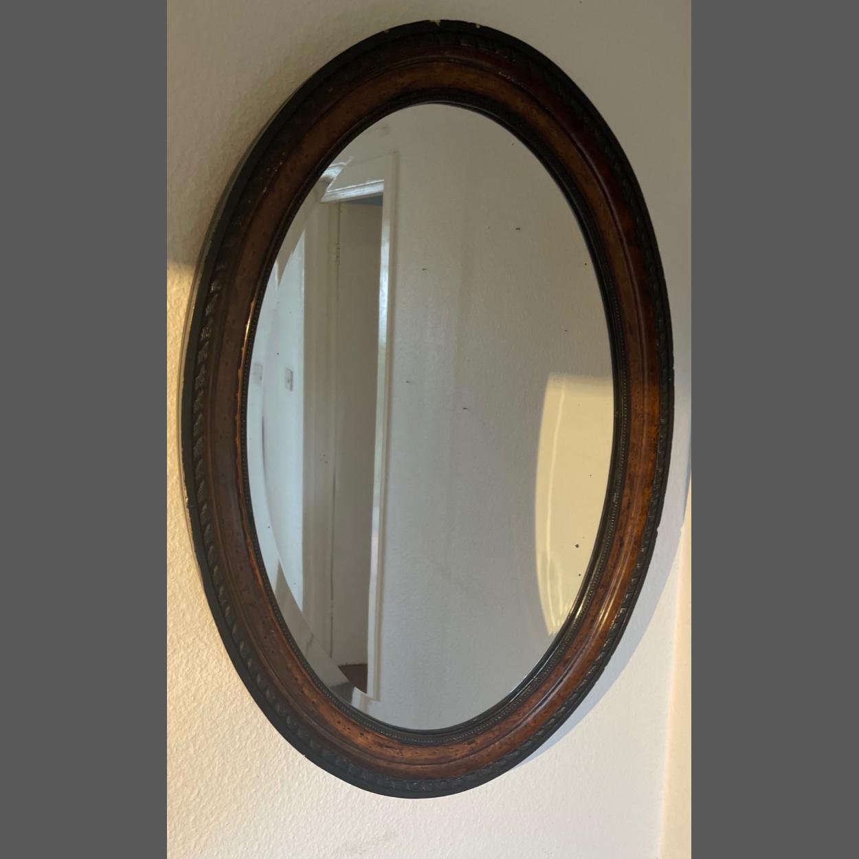 An EDWARDIAN wooden framed oval mirror 2ft diameter approx - ideal upcycling project
