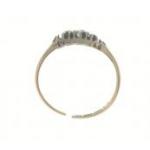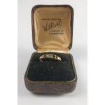 An 18ct gold ring in ring box . Missing stones and cut in band. Two remaining small diamonds. Size L 1.77g approx
