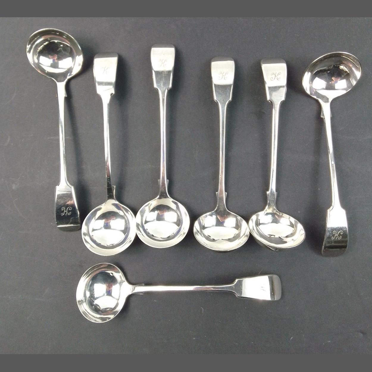 Seven super silver plated 18cm long toddy ladles. Al in good condition.