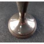 A pair of filled silver candlesticks hallmarked for Birmingham 1924 made by PH Vogel & Co, each standing 14cm approx, gross weight 207g approx. Significant damage to the stem on one.